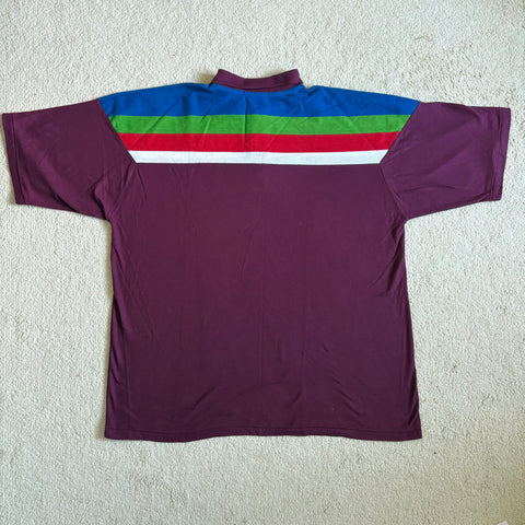 Description: This is the jersey from one of the most iconic Cricket World Cups ever — the 1992 edition co-hosted by New Zealand and Australia, with every team rocking the same kit template: bold block colours, diagonal stripes across the shoulders, and a healthy splash of early-90s flair.