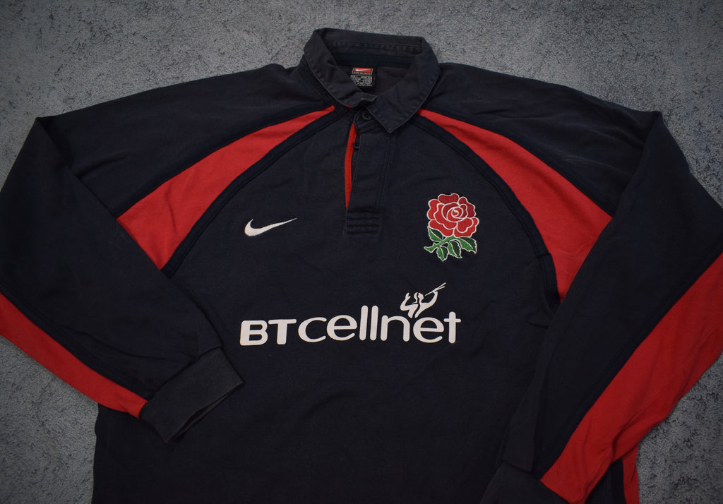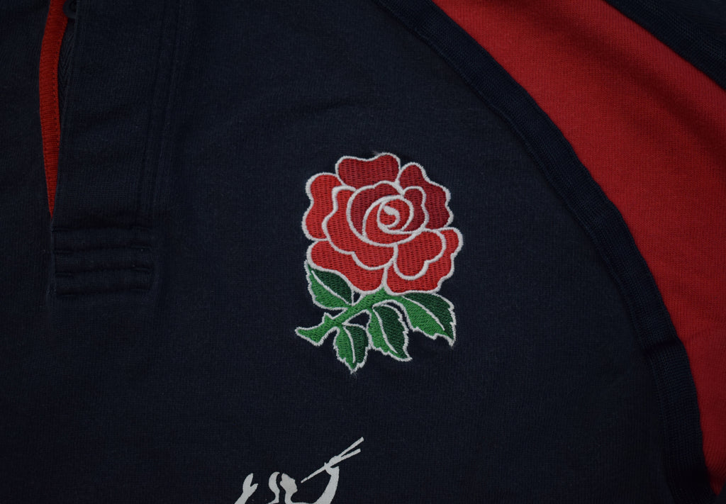 Description: Incredible jersey, reminiscent of a young Jonny Wilkinson. Lovely thick cotton and I love the sponsor on this jersey. It really blends in well with the design and doesn't hog too much space.