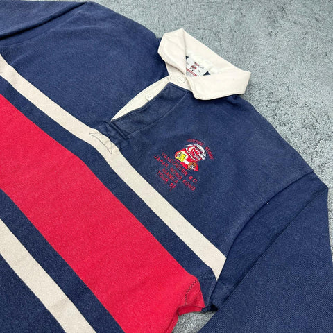 Description: This is a Justice Rugby Vancouver touring jersey produced for the club’s 1995 Hong Kong & Manila tour, a distinctive piece of mid‑1990s international touring rugby history.