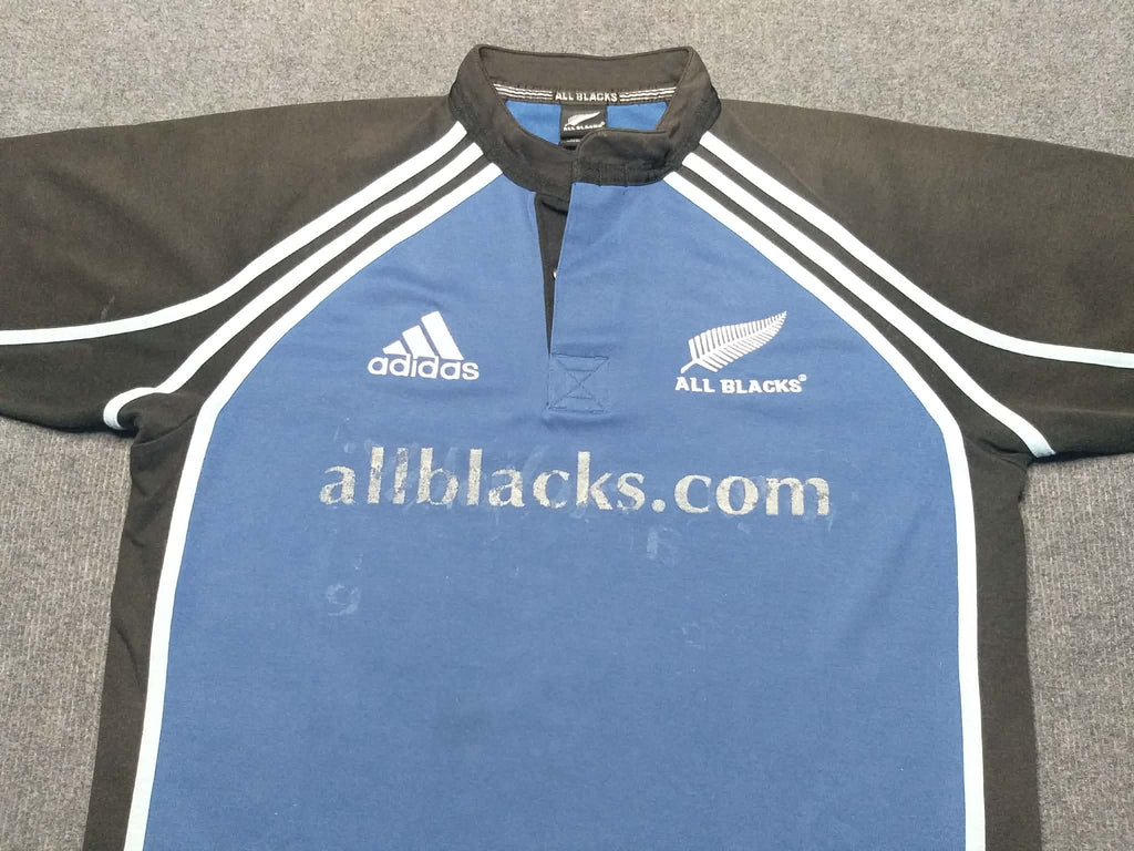 Description: These training jerseys by adidas aren't easy to come by and represent a devastatingly talented era for the All Blacks side. The blue really pops on this one!