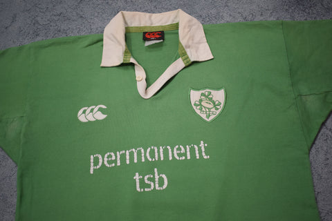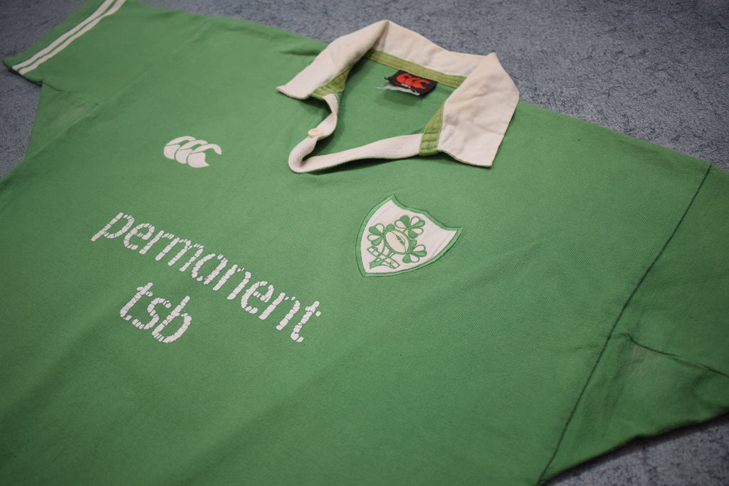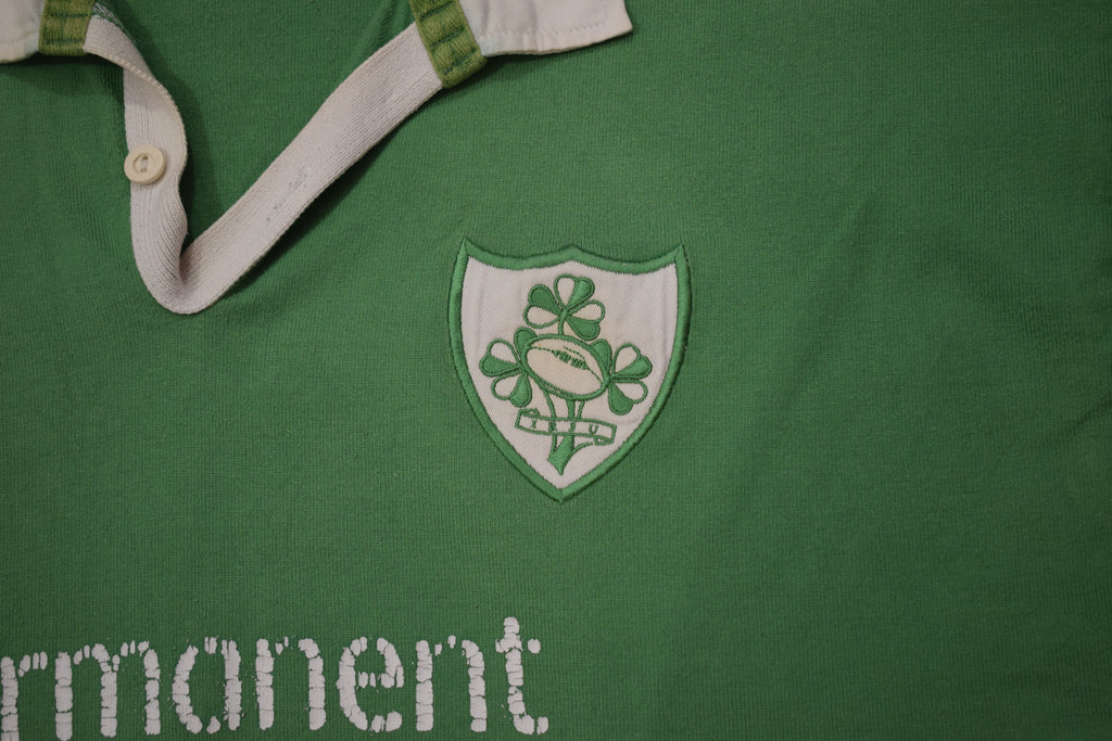 Description: The classic Irish rugby shirt, perhaps the most iconic of the cotton era. In great condition overall and still emerald green!