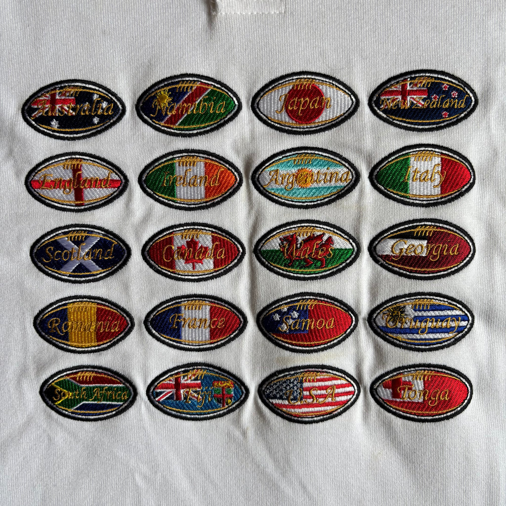 All of the badges are individually embroidered to represent the nations that participated in the 2003 RWC in the Australia and it comes with a 600/1000 embroidery as well as a certificate to verify it's a limited edition piece.