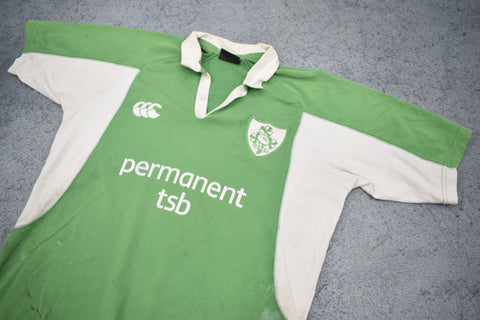 Made by Canterbury, the jersey featured the rich emerald green base, white collar and detailing, and the last year of the Permanent TSB sponsor across the chest — a look that balanced tradition with the sharper cut of mid-2000s kit design.