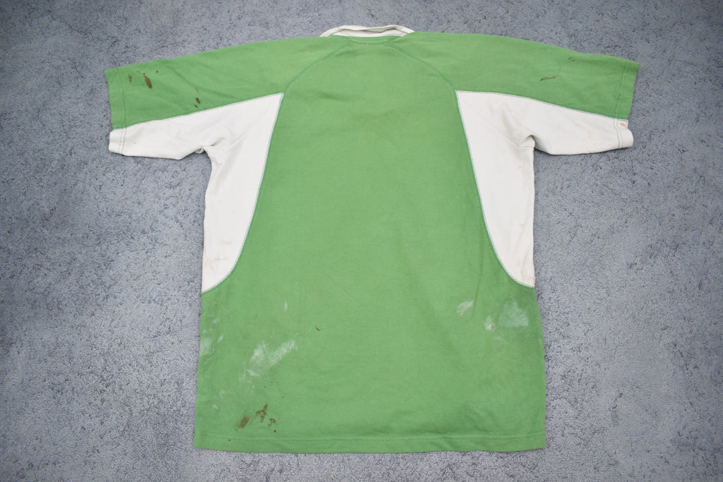 Description: The 2005 Ireland jersey comes from a season where the men in green were firmly establishing themselves as a force in northern hemisphere rugby. Captained by Brian O’Driscoll, with core players like Ronan O’Gara, Shane Horgan, Gordon D’Arcy, and Paul O’Connell, the side claimed their second Triple Crown in as many years with wins over Wales, Scotland, and England in the Six Nations.