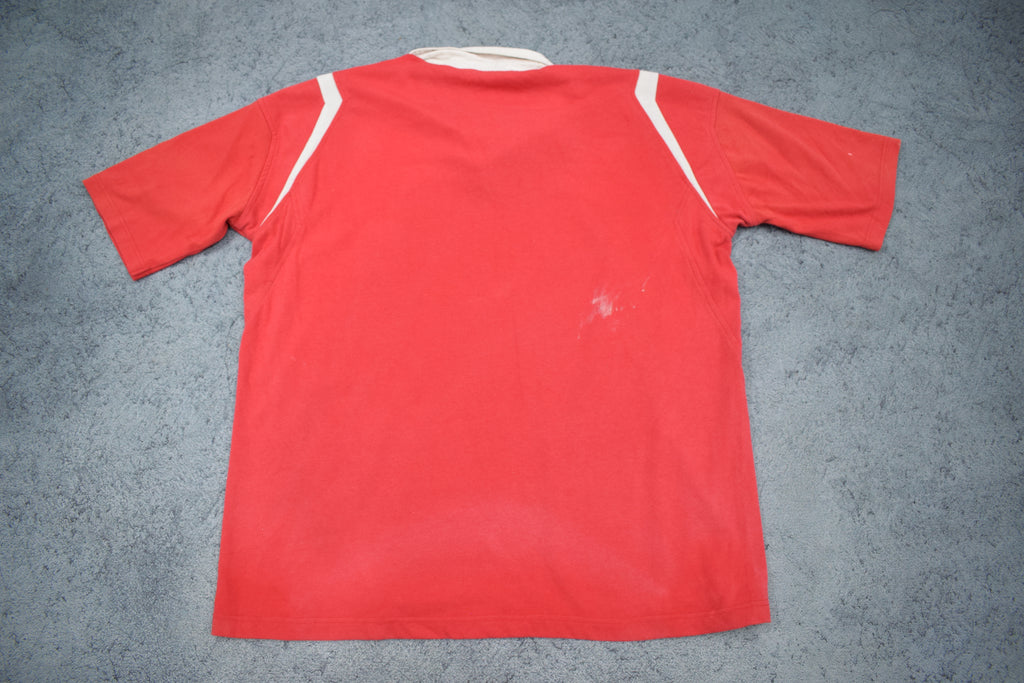 Description: We have another cracking Welsh jersey here. The days of Gavin Henson's fringe and Gareth Thomas on the charge. A nice Welsh jersey, made in comfortable cotton material.
