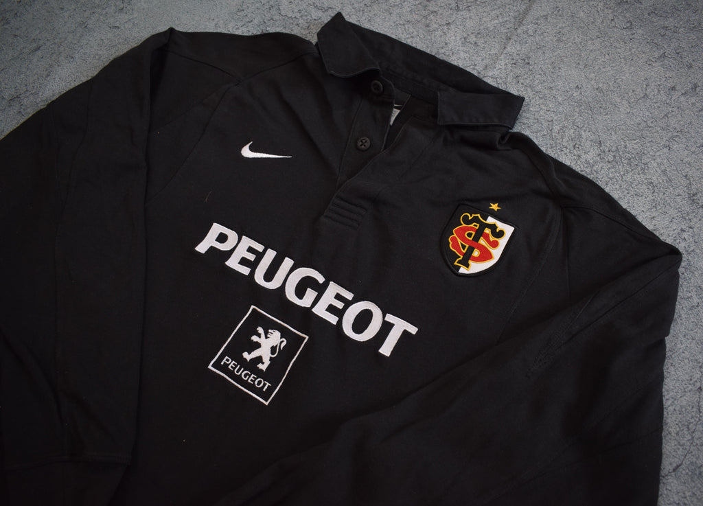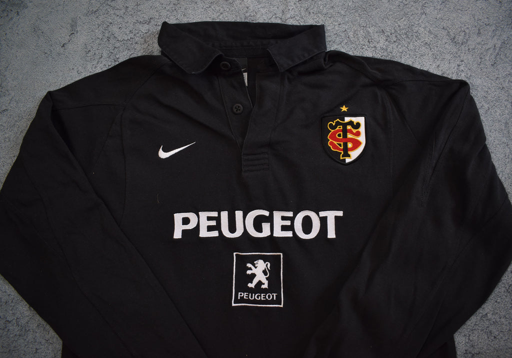 Description: Nike banger! The red and black of the French juggernauts Toulouse, is nicely worked into this strip. The home of Antoine Dupont and Ntamack, as well as that of Jerome Kaino, they've always been a force in European rugby.