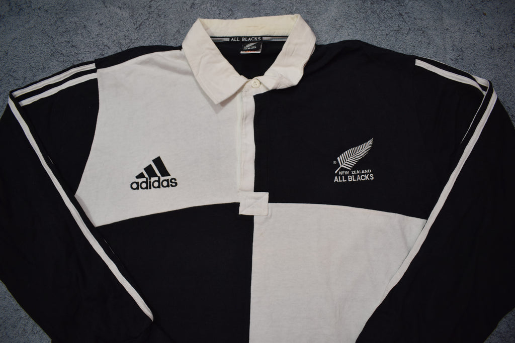 Description: A very unique All Blacks training jersey from the early heavy cotton Adidas days! Great collectors piece.