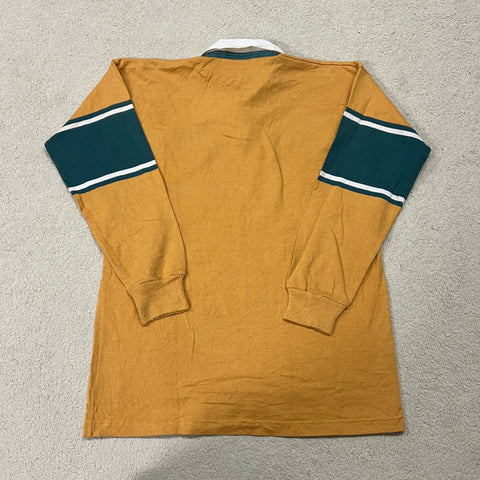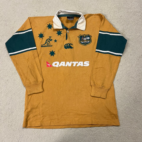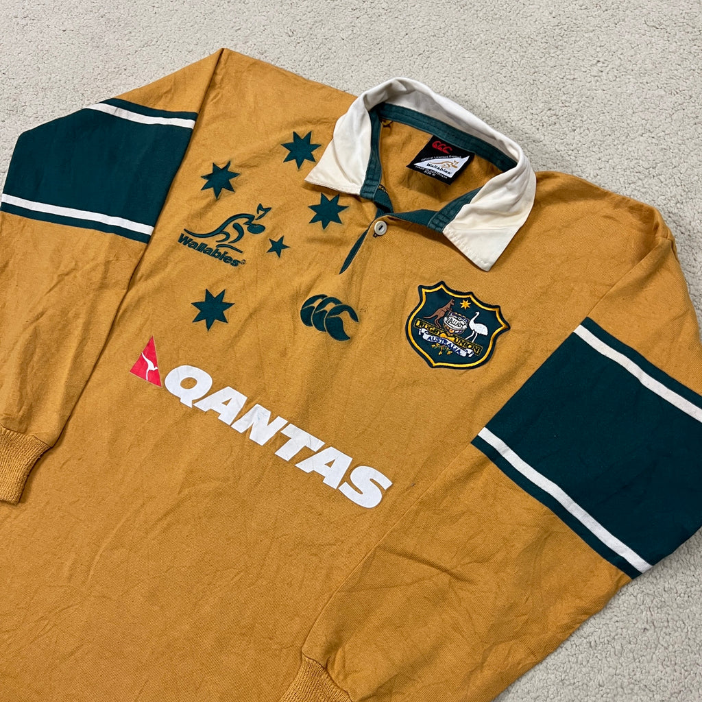 The Southern Cross sleeve design is one of the most recognisable Wallabies looks of the professional era. Gold and green, long sleeve, Qantas on the chest. Proper Australian rugby heritage.