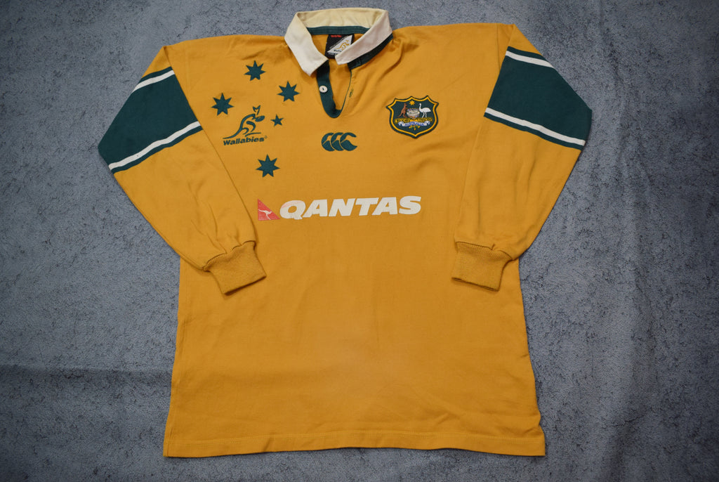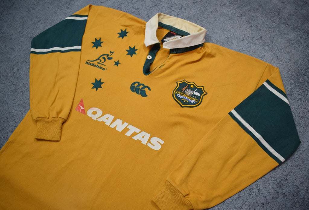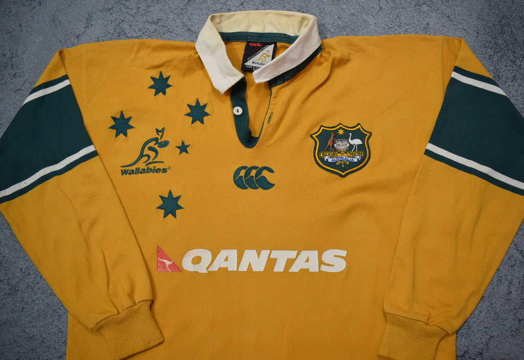 Description: A true blue Aussie classic, the Qantas sponsor fits well on this jersey in my opinion. Some excellent players turned our for the Wallabies in 04, including Chris Latham and George Smith and Larkham.