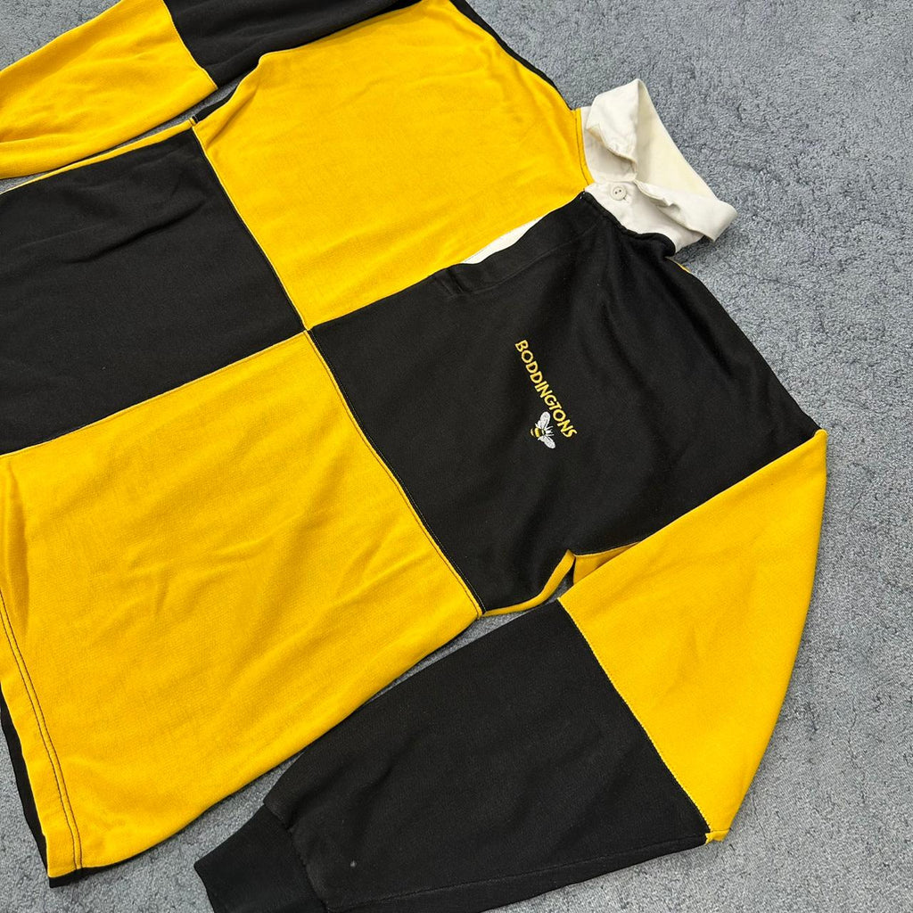 Description: This Boddingtons rugby jersey is linked to the well‑known Manchester brewery, a brand that has had strong historical ties to rugby sponsorship and promotional apparel in the UK. During the 1990s and early 2000s, brewery‑branded rugby shirts were commonly produced for club sponsorships, tours, and promotional campaigns, particularly across Northern England.