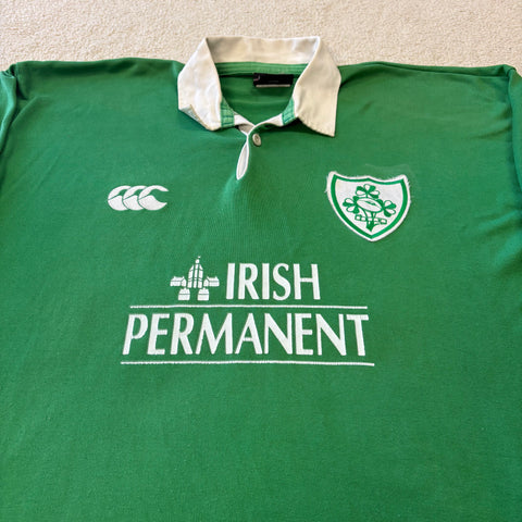 Description: A classic Irish rugby shirt, perhaps the most iconic of the cotton era. Keith Wood won the IRB Player of the Year in this strip, and is still the only front-rower to achieve this feat.