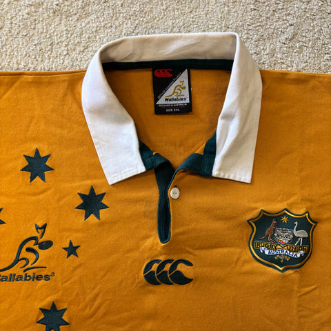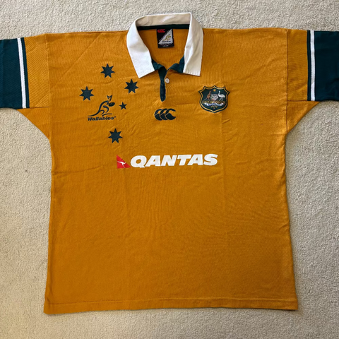 Description: A true blue Aussie classic, the Qantas sponsor fits well on this jersey in my opinion. Some excellent players turned our for the Wallabies in 04, including Chris Latham and George Smith and Larkham.