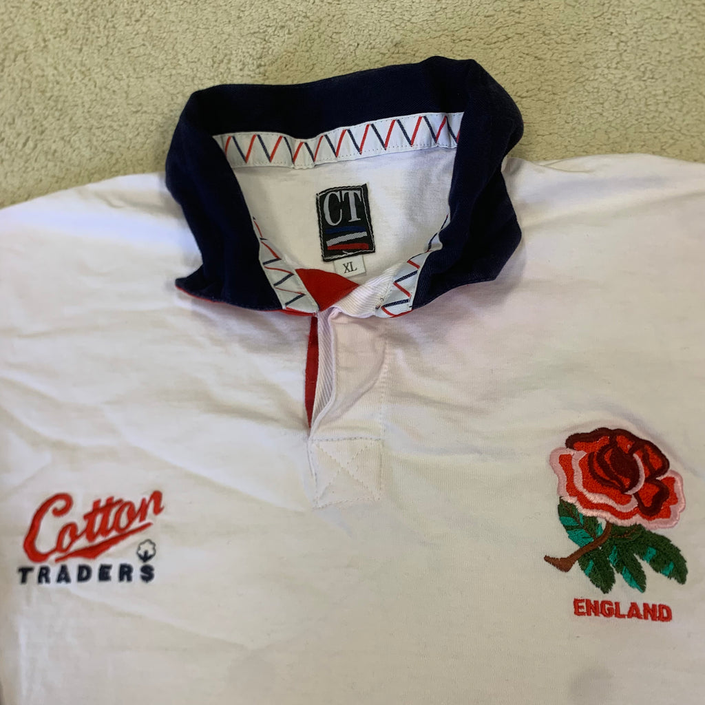 Description: Iconic England strip from the mid-90s. Cotton Traders simple design and superior quality are tough to beat!