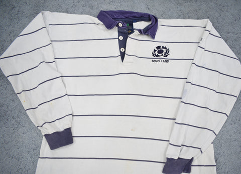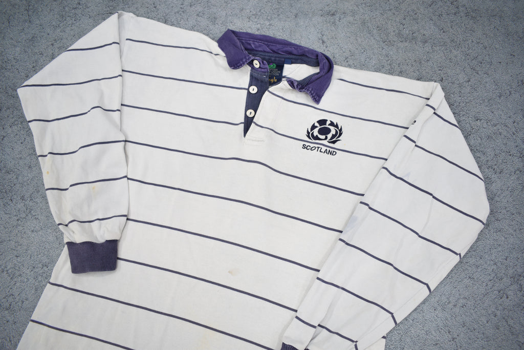 Description: Incredible jersey, a difficult one to find these days! Made by Pringle in Scotland, it's an absolute Scottish grail. As worn in Gavin Hastings era, another one of Scotland's well designed alternate strips.