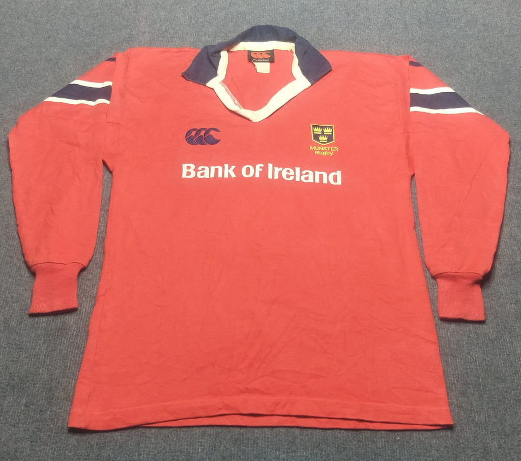 Description: The quintessential Munster jersey. Awesome piece of memorabilia for any supporters of the club who famously bet the All Blacks before the Irish did. In a classic longsleeve.