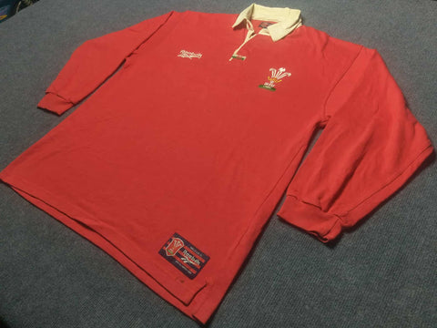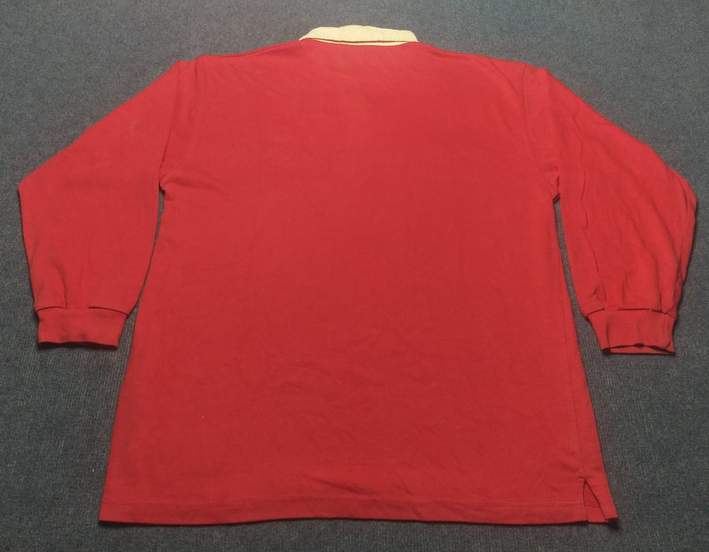 Description: We have a cracking Welsh jersey here. The red is super vibrant and the collar detail adds some great effect to an otherwise clean design. Awesome thick heavy cotton fabric - super comfortable and won't wear out any decade soon.