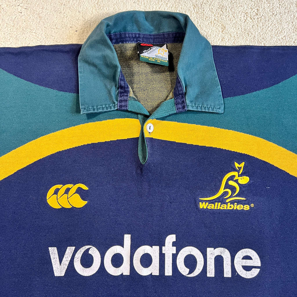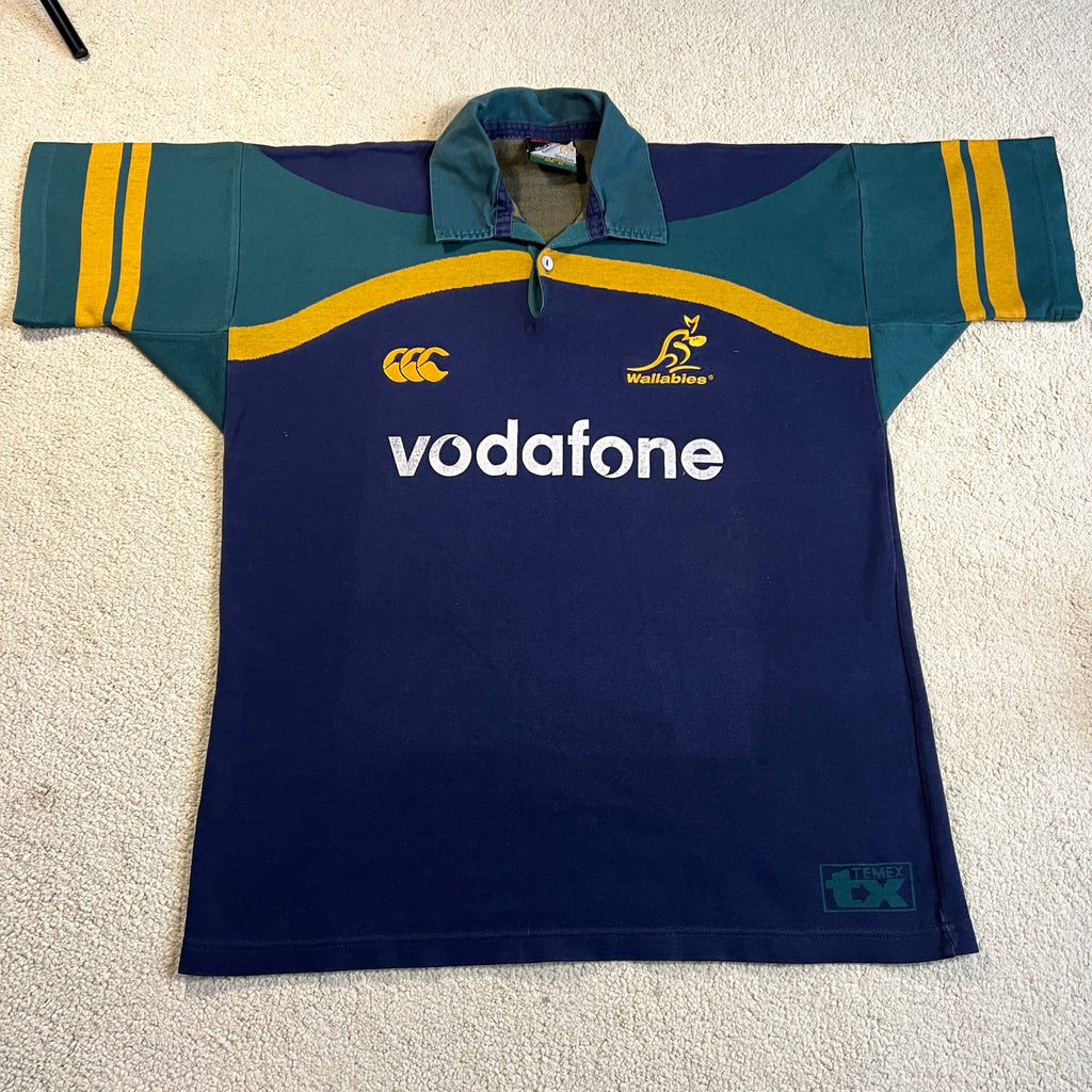 Description: Amazing Wallabies Temex training jersey, one of three ever made. I love the dark design, with the gold accents really standing out as opposed to the usual bright Australian kits. Made with Temex technology, known for its legendary comfort and durability.