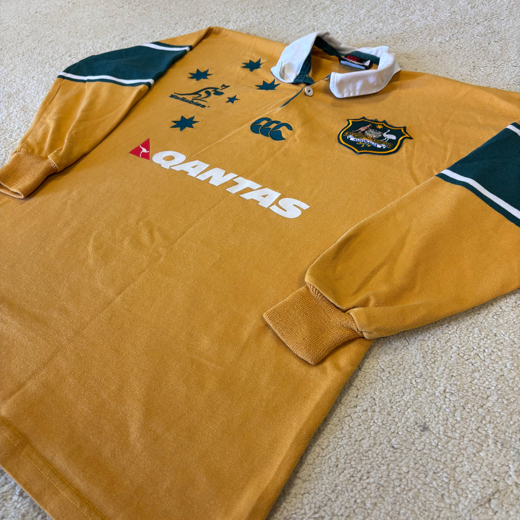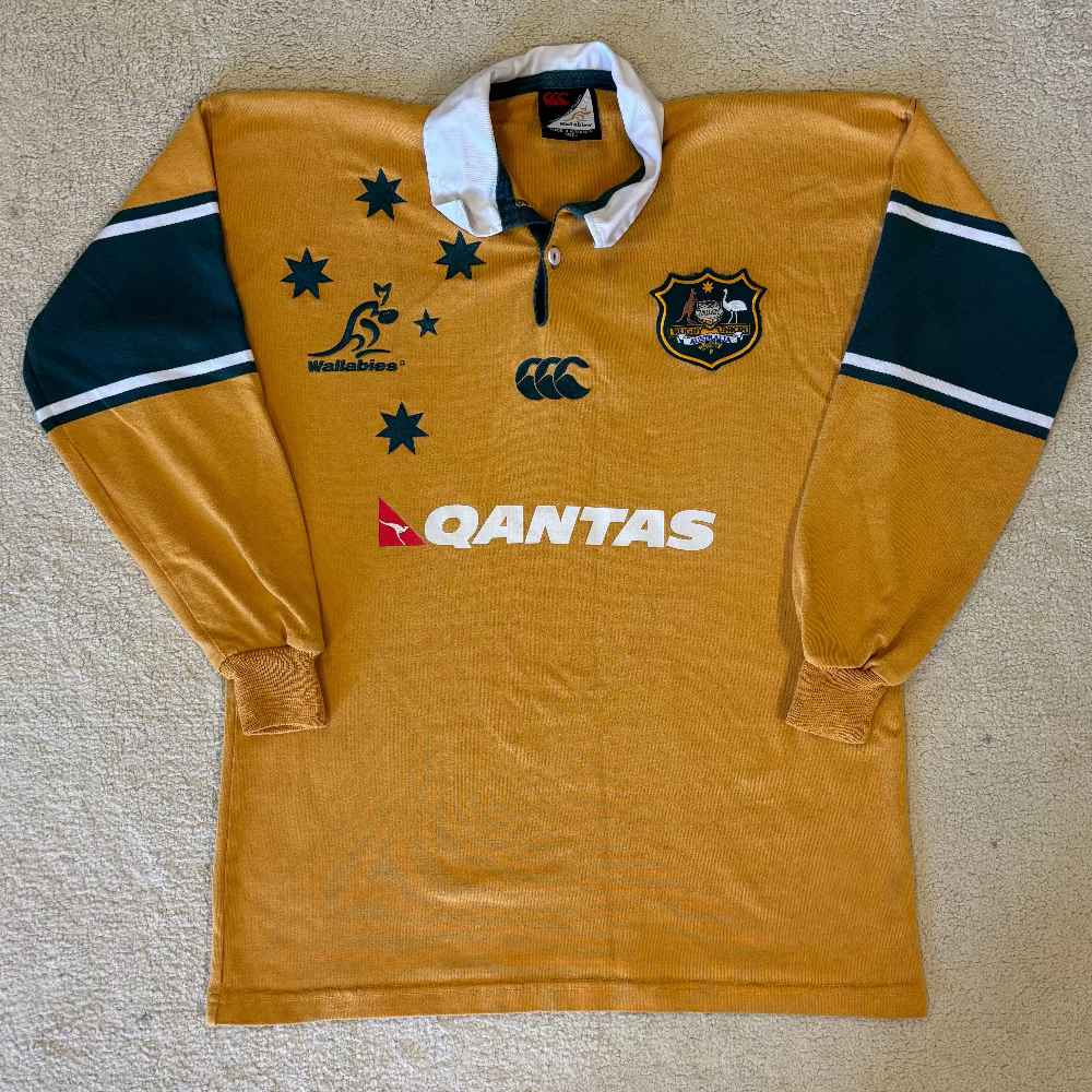 Description: A true blue Aussie classic, the Qantas sponsor fits well on this jersey in my opinion. Some excellent players turned our for the Wallabies in 04, including Chris Latham and George Smith and Larkham.