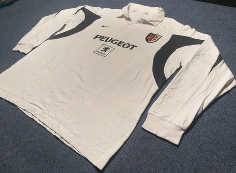 Description: Nike banger! The red and black of the French juggernauts Toulouse, is absent from this away strip but it's unmistakably French! The home of Antoine Dupont and Ntamack, as well as that of Jerome Kaino, they've always been a force in European rugby.