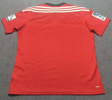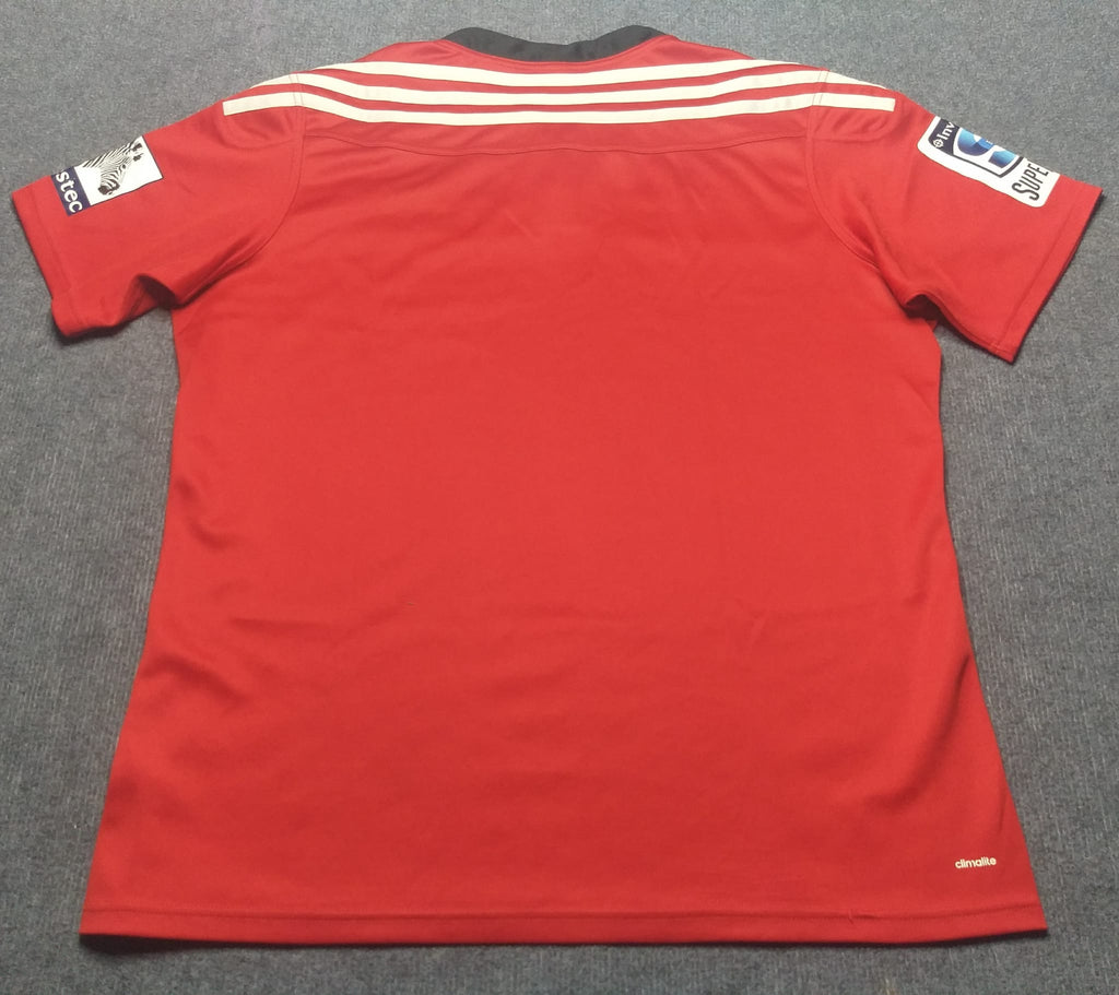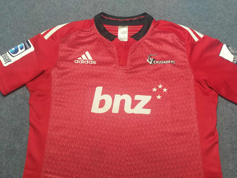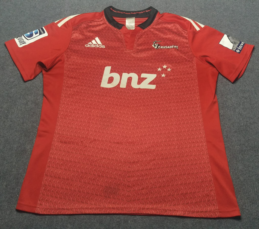 Description: A novel and unique Crusaders jersey from 2015, with chainmail subtly featuring across the design and of course with the classic logo.