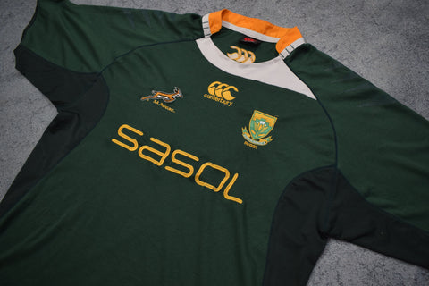 Description: A cool example of a Springboks jersey. A great reminder of some Boks legends such as Burger, Habana and Du Preez. The SASOL sponsorship fits so well.