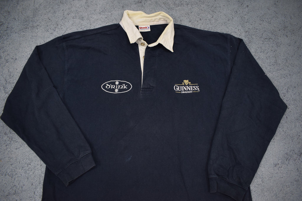 Description: Great-looking Guinness jersey. In decent condition, Great for Guinness fans and rugby collectors alike. Has an embroidery on the chest in Celtic font!