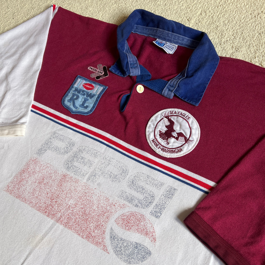 Description: Great Sea Eagles memorabilia! They wore this style strip from 1992-1997 and had some great results wearing it, including a Premiership in 1996. Steve Menzies, Matthew Ridge and many other legends donned this kit.