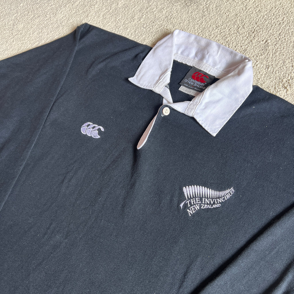The jersey is not only a fantastic looking jersey, but has some interesting history! As Canterbury lost the rights to manufacturing the All Blacks gear in 1998, this was a cheeky dig to continue profiting from the NZ Rugby brand. They were taken to court eventually by the NZRU in 2001 and stopped making jerseys with the 'Invincibles' insignia as a result.