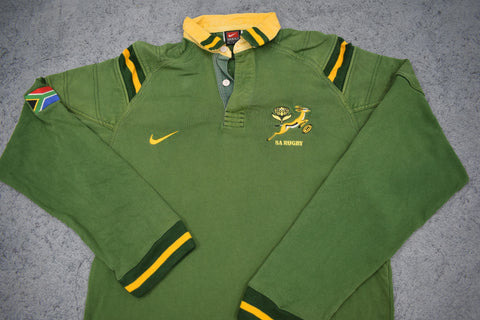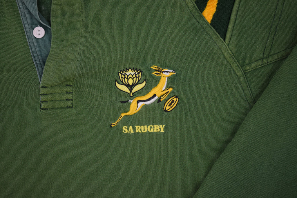 Description: Very early Springboks Nike jersey, one of the first with the iconic Swoosh. The Nike heavy cotton fabric was so thick, a very comfortable and hard-wearing jersey. Before there were any sponsors involved!