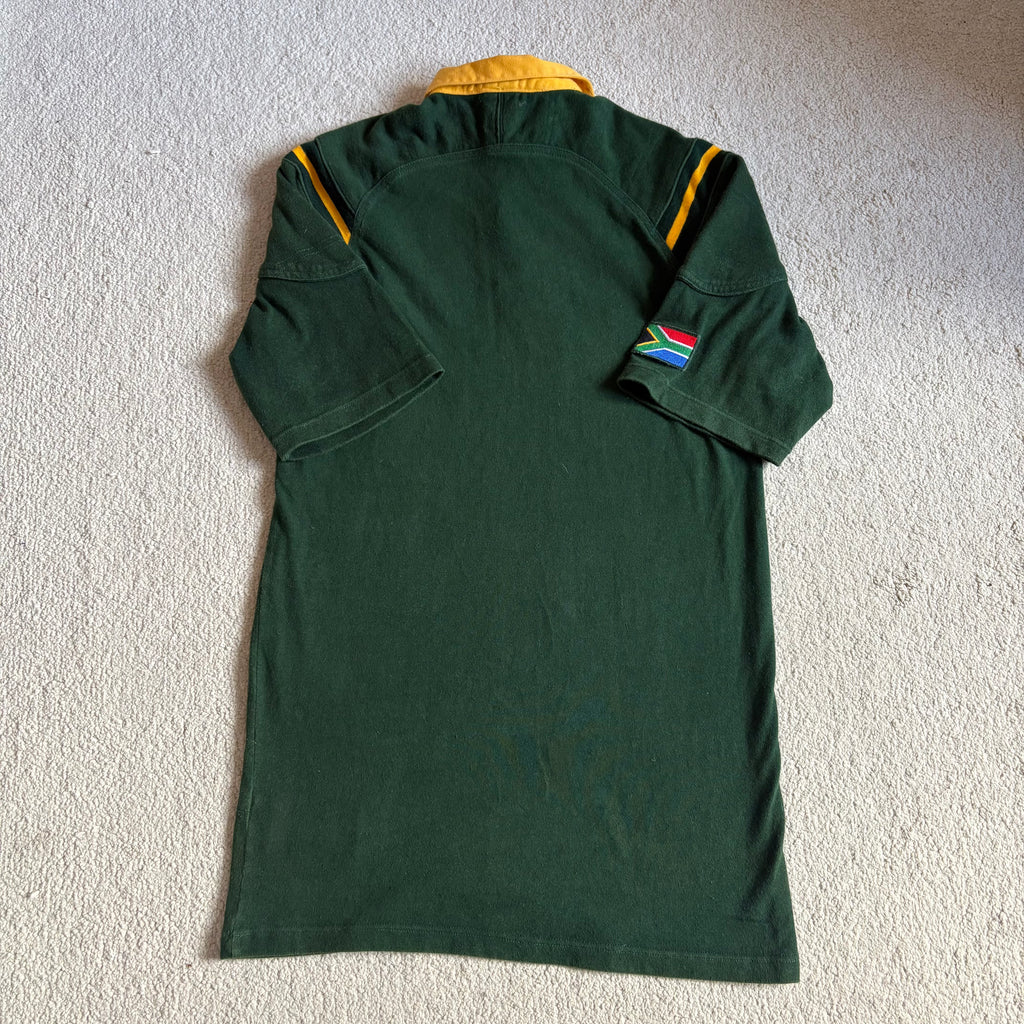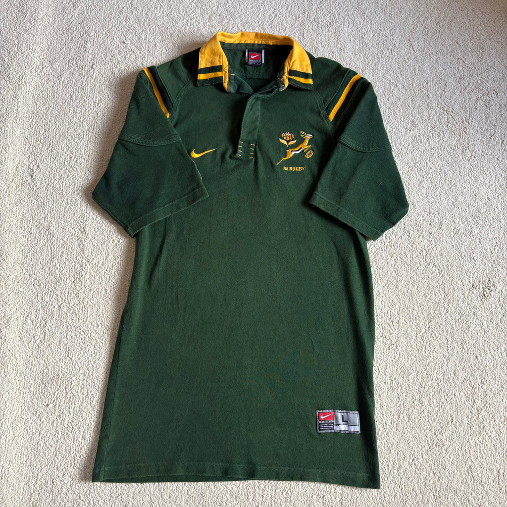 Description: Brilliant Boks jersey from the late 90s. The Nike heavy cotton fabric is so thick, great shoulder detail. It's an iconic jersey worn by some Bok legends!