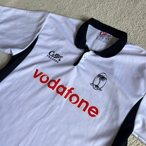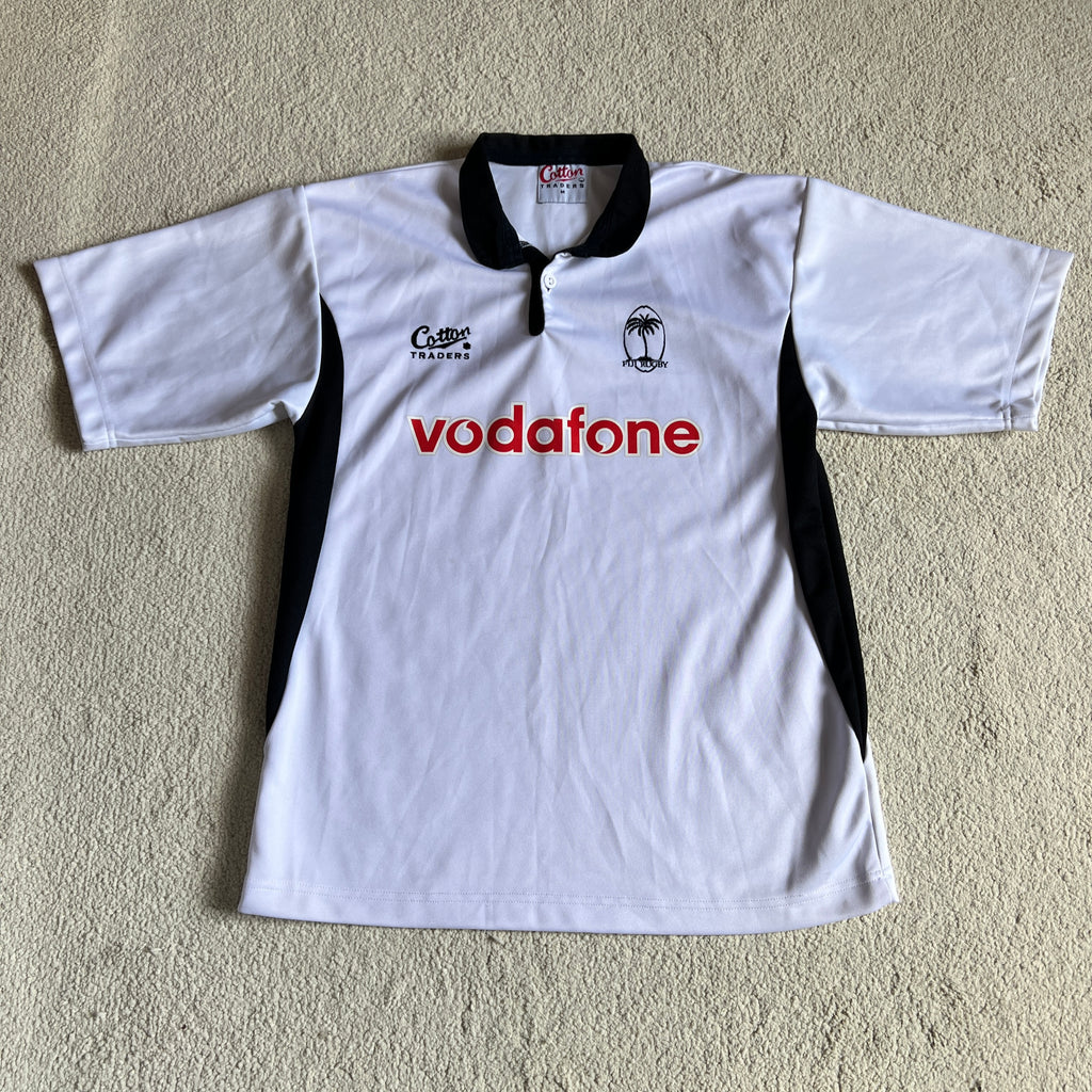 Description: A beautifully simple Fiji Home jersey from the mid-2000s. No crazy designs, just crisp white and made in Fiji which is my favourite part!