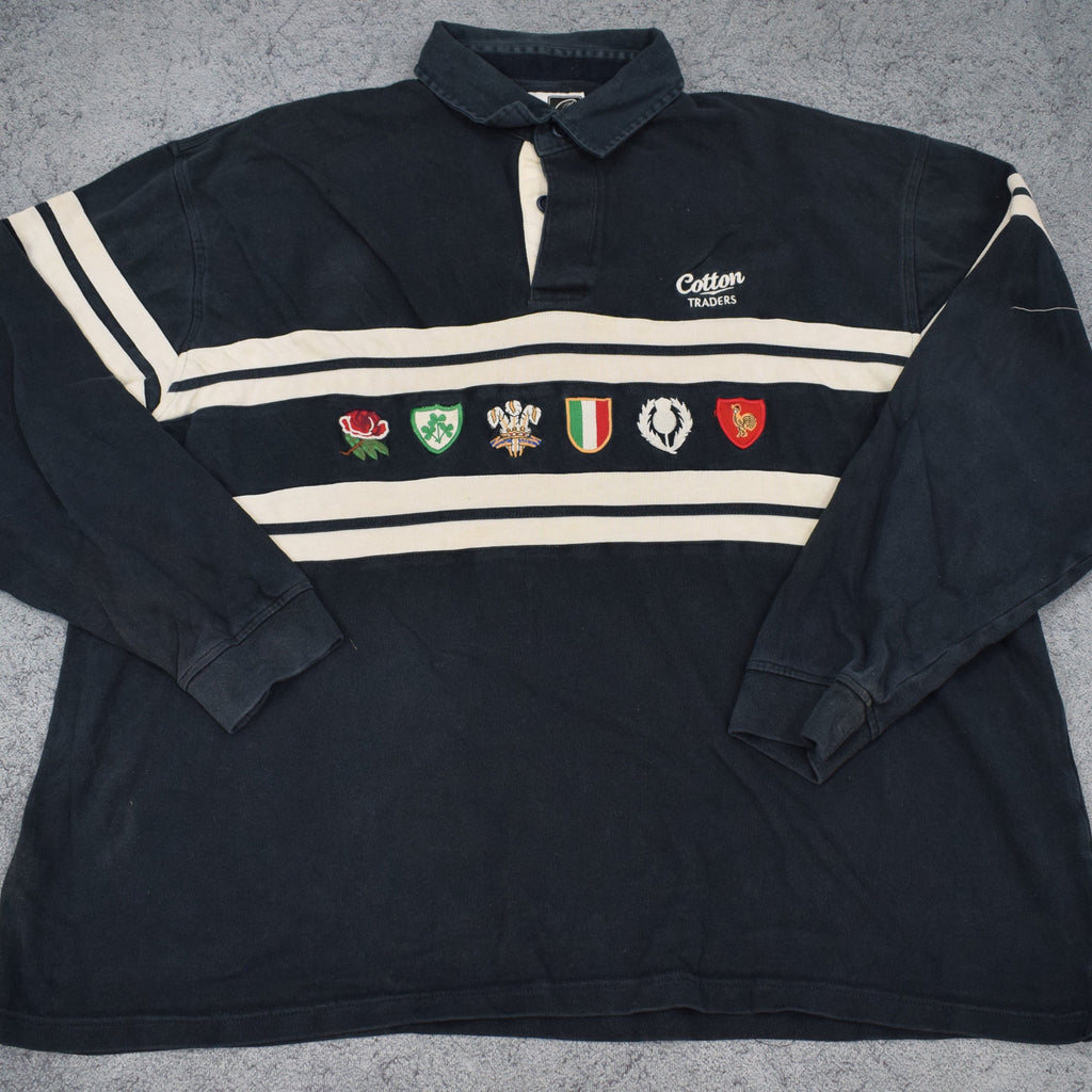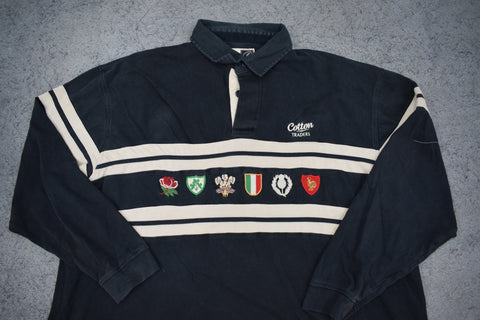 Description: A cool jersey made with the classic heavy cotton showing the crests of each team in the comp. Nice design, simple. You can't lose if you're wearing this one - celebrating rugby culture!