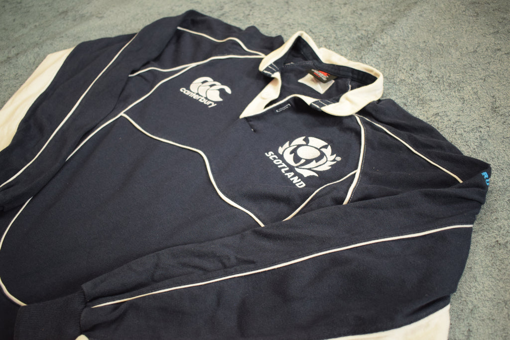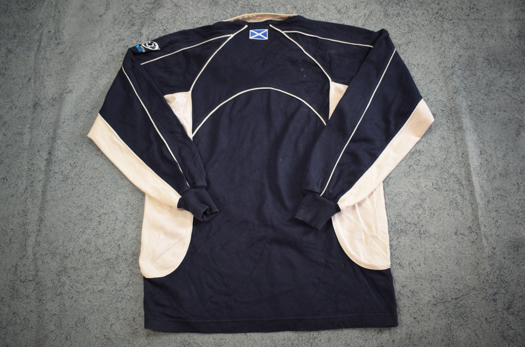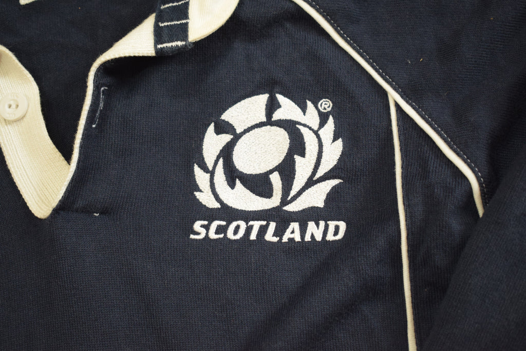 In 2007, Scotland had a decent year in the Rugby World Cup reaching the quarter-finals, pushed on by key players like Chris Paterson, Jason White, and Mike Blair. Wearing navy with the traditional white trim, this Canterbury-made jersey carried the modern fit of the mid-2000s while keeping the classic Scottish look.