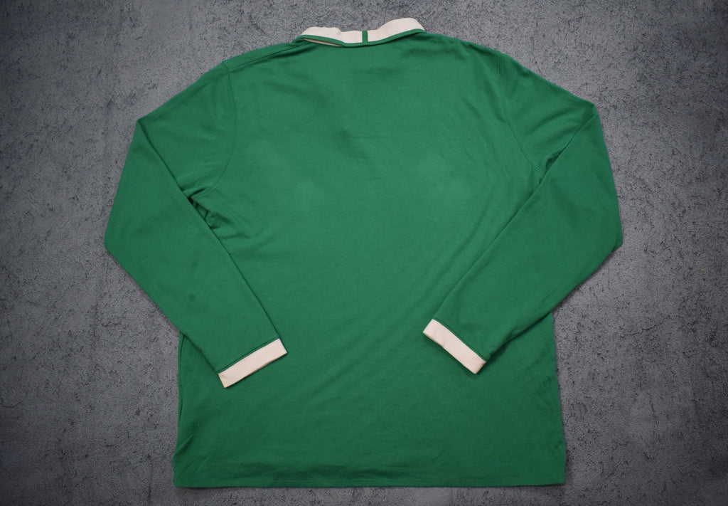 Description: A modern jersey, but remade in the old style with long-sleeved poly cotton fabric and a stub collar.