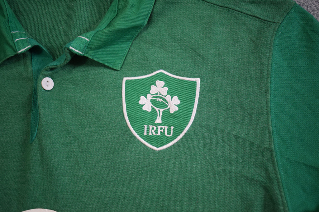 Description: A modern jersey, but remade in the old style with long-sleeved poly cotton fabric and a stub collar.