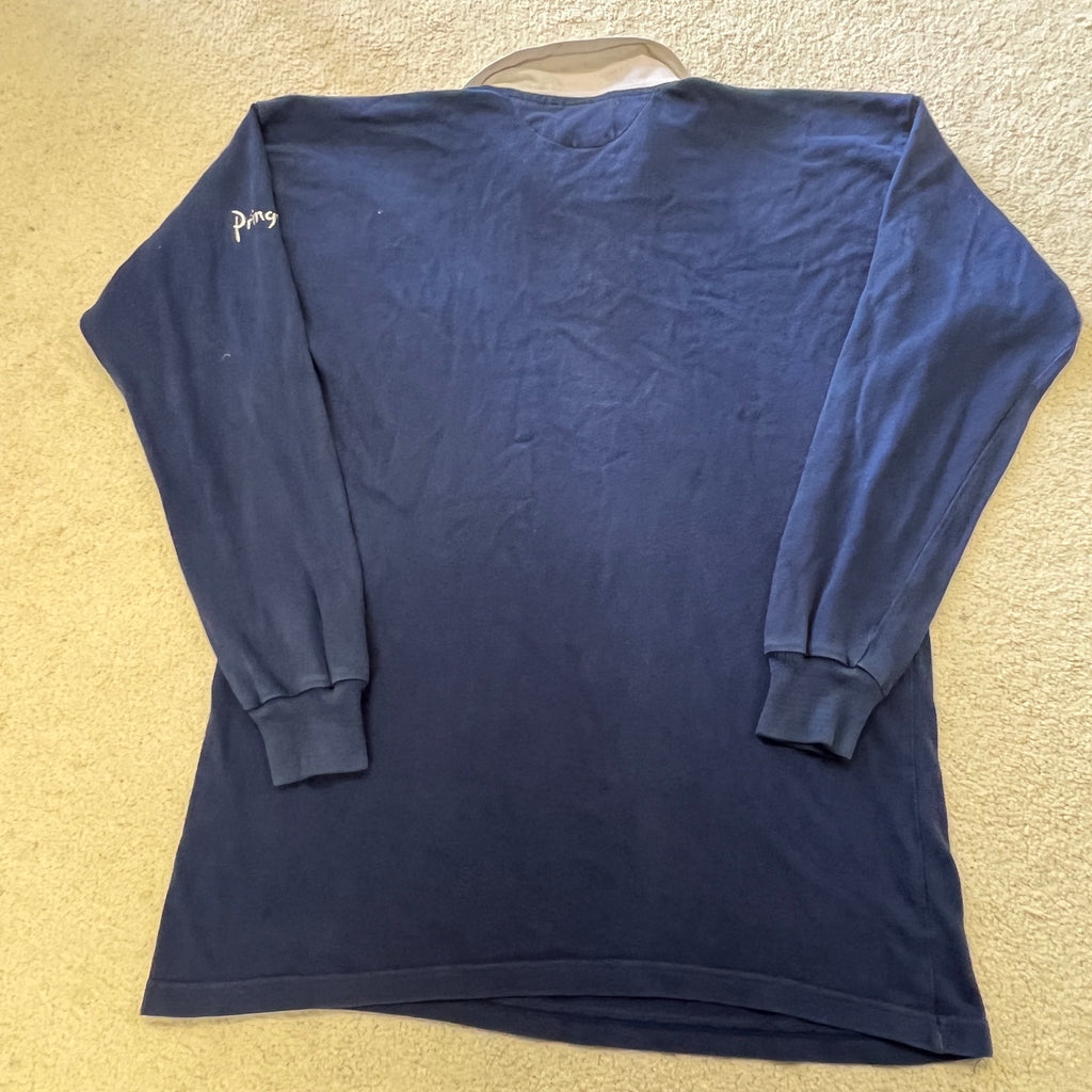 These Pringle of Scotland jerseys from the pre-sponsor era are increasingly hard to find. Heavy cotton, long sleeve, no frills.