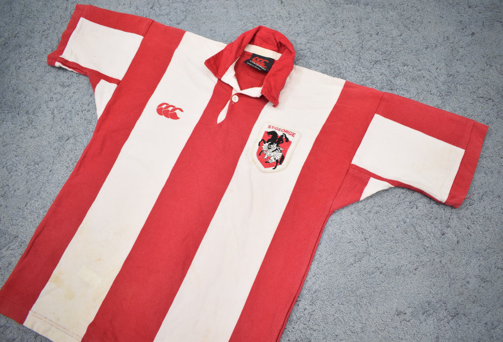 Description: I've one seen one other like it! A truly unique design and a belter of a St George Dragons kit. The St George Dragons were the team the came before the St George Illawarra Dragons, who merged in 1998.