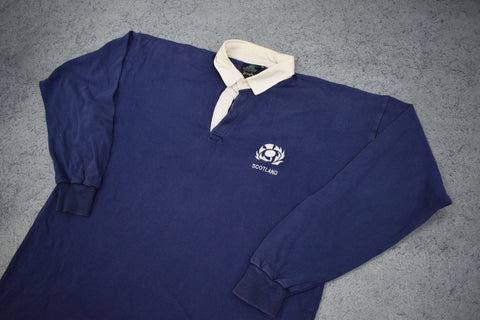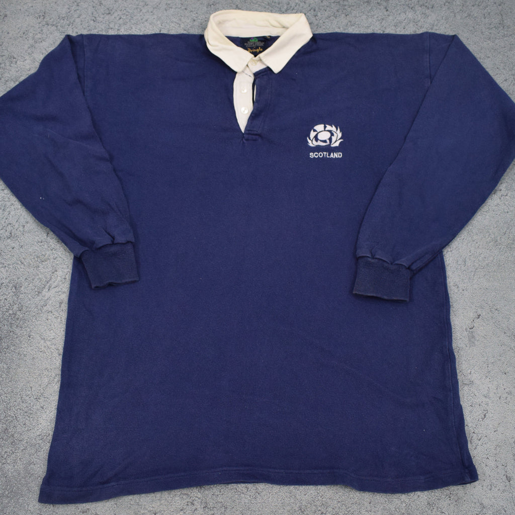 Description: Incredible jersey, the Scottish version of the Steinlager ABs. Made by a Scottish brand in Scotland, clean and classic. As worn in Gavin Hastings era.