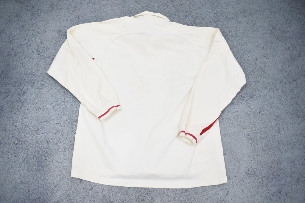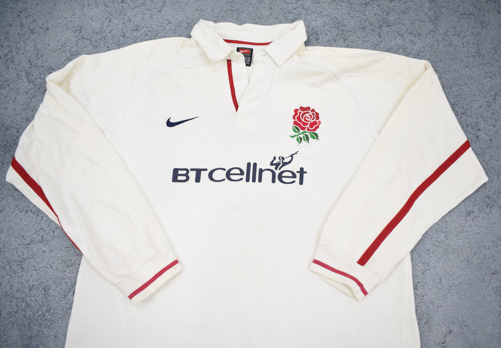 Description: Incredible jersey, reminiscent of a young Jonny Wilkinson. Lovely thick cotton and I love the sponsor on this jersey. It really blends in well with the design and doesn't hog too much space.