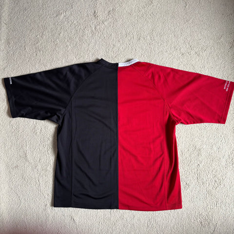 Description: This was a limited edition jersey retailed in NZ during the 2005 tour. An amazing and ambitious design, the cool thing is it's actually two separate pieces of fabric, these days something like this would be sublimated.