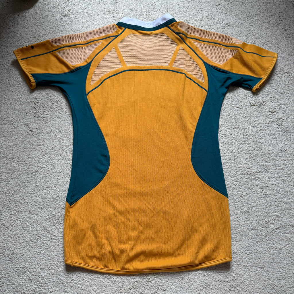 This is a pro version of the jersey, complete with chest grips, elasticated underarms and felted RWC and Wallabies crest. Please note - this isn't a match jersey, as you can see by the 'Wallaby' ball over the coat of arms.