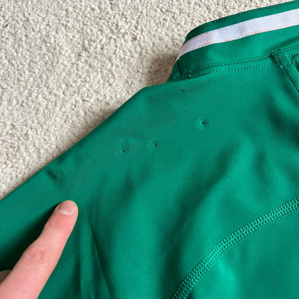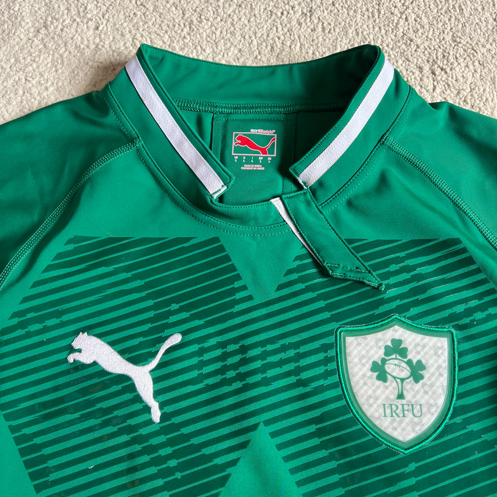 Description: A player issue jersey from the tour of NZ in 2012, specifically the second test when a Dan Carter drop goal broke Irish hearts in the 81st minute to break a 19-19 deadlock in Christchurch.