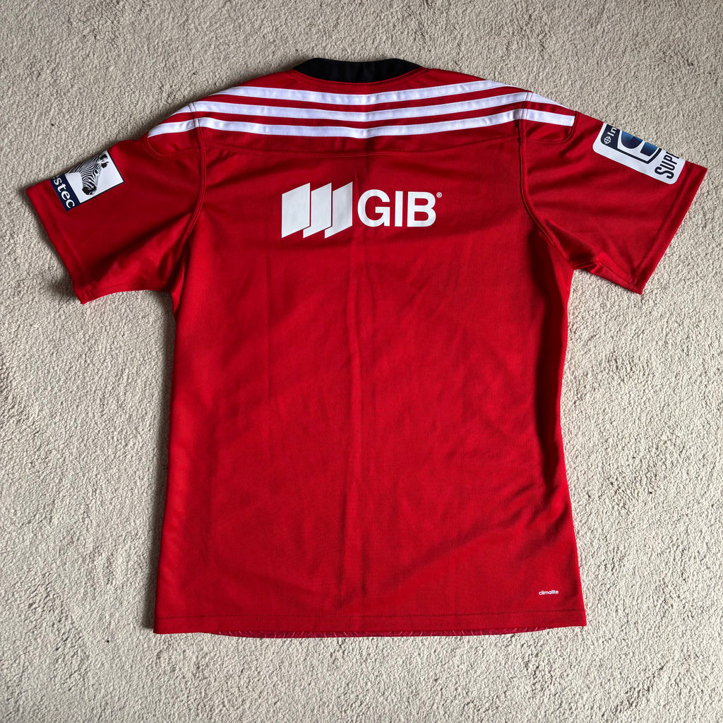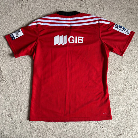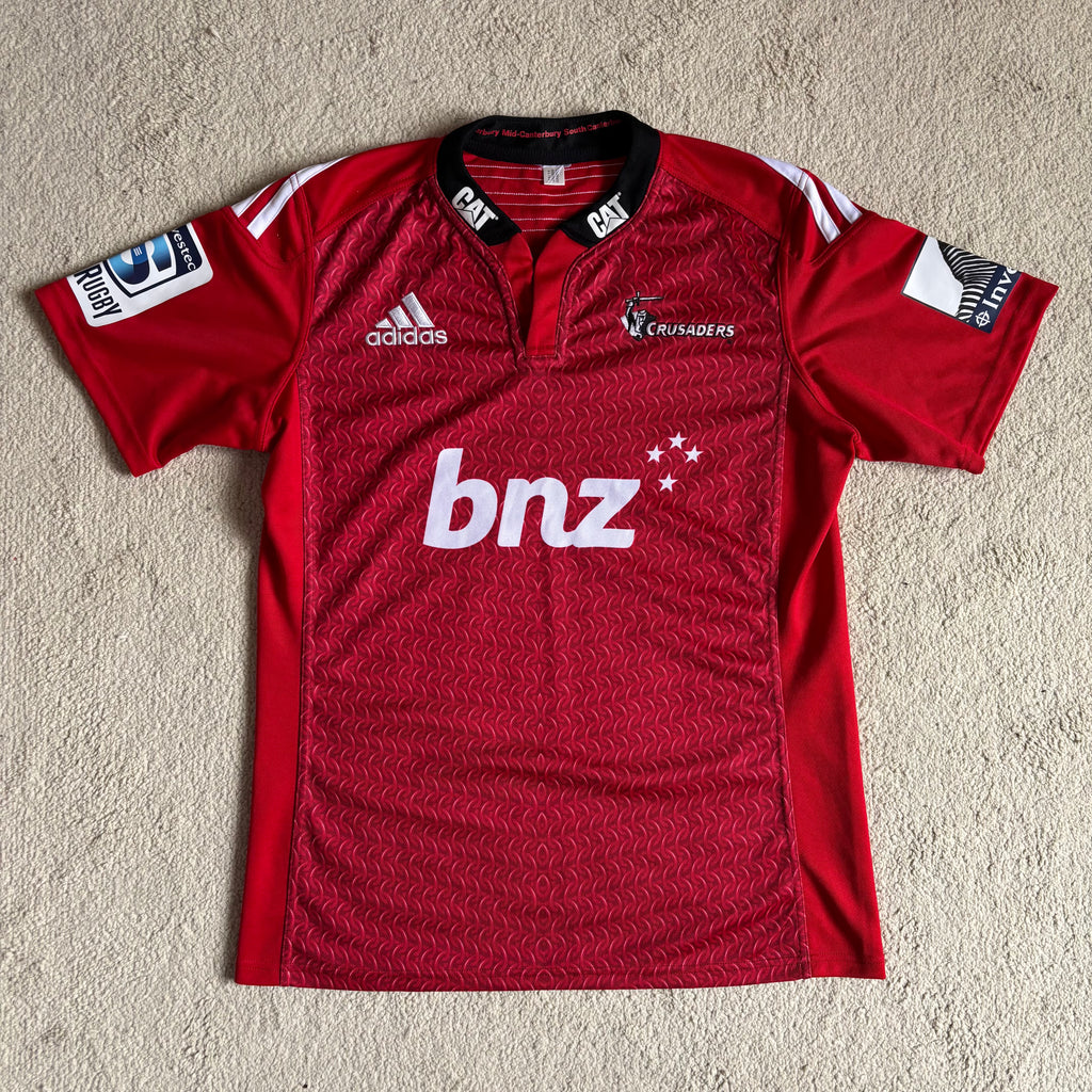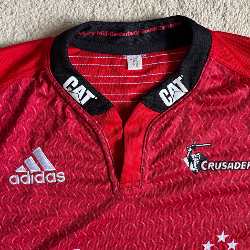 Description: A novel and unique Crusaders jersey from 2015, with chainmail subtly featuring across the design and of course with the classic logo.